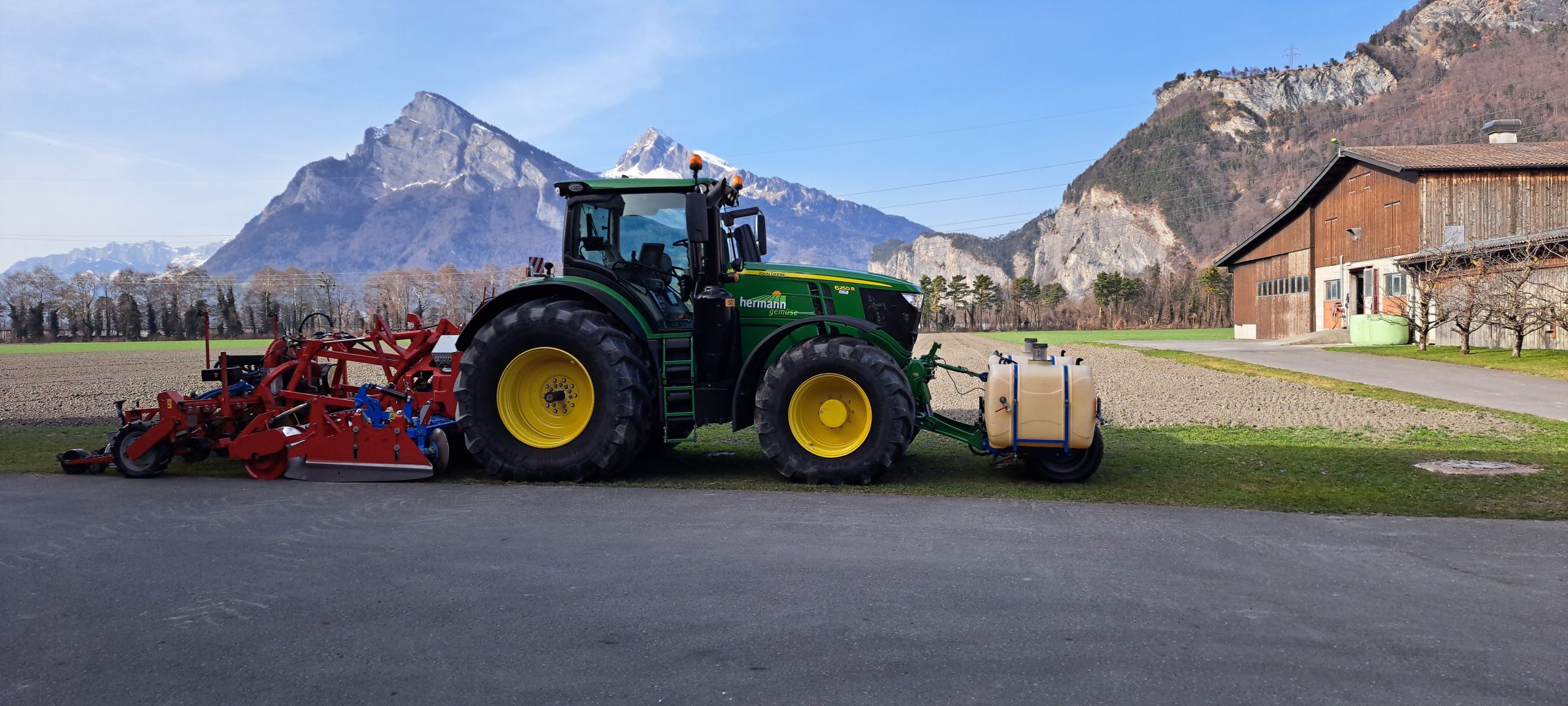 Bild unten: Die Gemüse - Sämaschine steht bereit um am darauffolgenden Tag (6. März) die Früh - Karotten zu säen.